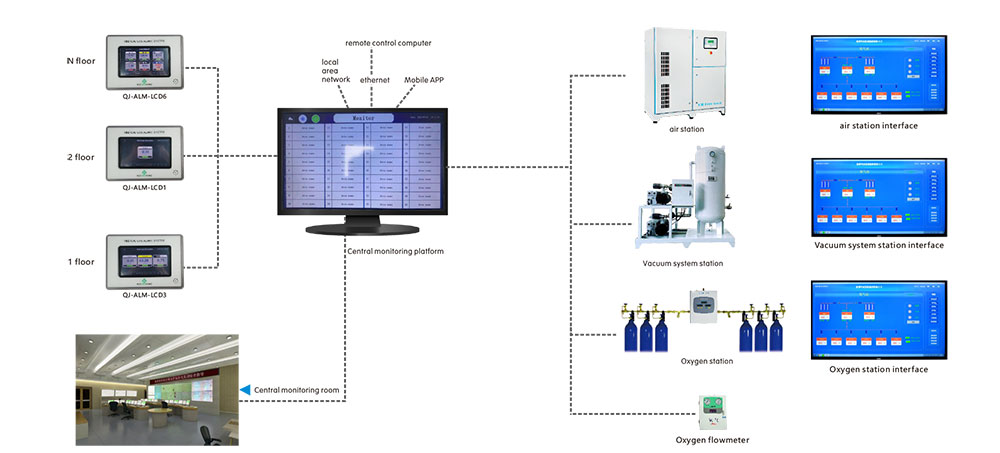 6. Nachdem das zentralisierte Überwachungssystem mit dem Ethernet verbunden ist, kann der Remote -Betrieb und die Network -Freigabe realisiert werden. Die Standard-RS485-Schnittstelle bietet alle Echtzeitalarmsignale und Druckdatenausgabe